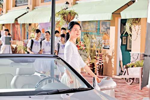 她在該輯廣告中,身穿純白衣裙駕車,一副純情模樣,畫面背后是一些青春氣息洋溢的女學(xué)生,看上去Maggie的白滑肌膚絕不比十幾歲的女學(xué)生遜色。