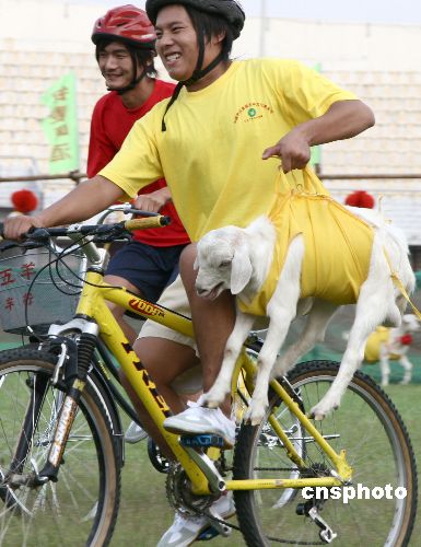 8月26日,“全國首屆自行車叼羊大賽”在山東省棗莊市舉行。比賽規(guī)定每次上場的2支參賽隊各派出4名自行車隊員,參賽隊員只有把代表自己隊伍顏色的5只小山羊叼回“羊圈”后,才有權(quán)去叼那只“公共羊”,最先叼回“公共羊”的代表隊獲勝。這次共有10支自行車代表隊參加了角逐比賽。作者:吉喆