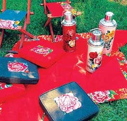 空閑的時(shí)候,不妨到郊外野營(yíng)一番,野餐巾、野餐坐墊等戶外活動(dòng)所需的一應(yīng)用品,如果融入以紅色為主的傳統(tǒng)布藝元素,同周圍的綠地,樹陰,陽(yáng)光融合,有一種入骨的古典華麗,讓你享受不一樣的戶外活動(dòng)時(shí)光。