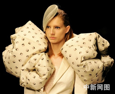 圖為模特展示設(shè)計(jì)師Michiko Koshino的作品。