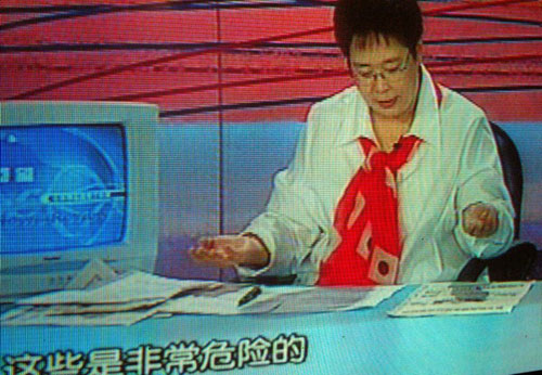 2004年3月29日,張?jiān)皆谥鞒种醒腚娨暸_(tái)一套《半邊天》節(jié)目時(shí)戴了一條印有類似日本國(guó)旗的圍巾,節(jié)目播出后被觀眾投訴。最后,央視國(guó)際網(wǎng)絡(luò)不得不出面澄清,以平息網(wǎng)友眾怒。
