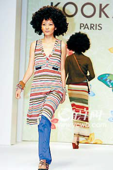 舒適的麻與純棉質(zhì)料是度假風(fēng)的最好詮釋。幾大品牌都推出了麻料下裝,不論是長褲還是短褲,剪裁寬松是統(tǒng)一標(biāo)志。IBLUES的闊腿長褲色彩跳躍,Kookai的咖啡色麻料五分褲休閑百搭,而一些綴小荷葉邊與花朵的純棉A字裙則帶有強(qiáng)烈的非洲色彩,與簡練的人字拖、船跟涼鞋一起成為沙灘女郎的必備單品。