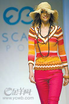 色彩繽紛的Kookai一向善玩多彩條紋,每季都會(huì)變幻不同花樣。今季可見更多橫紋與斜紋、縱紋的交錯(cuò),深V的領(lǐng)口設(shè)計(jì)彰顯女人味?v條紋與單色相拼接的小背心、蓬蓬裙,看上去休閑又俏皮,針織條紋背心則被用來與格仔襯衫搭配,帶出一股中性美。與之類似是ESCADASPORT,雖然用經(jīng)典黑白配來演繹水手條紋,卻將不同紋理分割羅列于同一件衣服上,甚至不惜在前襟開滿百合花的T恤背面玩起縱橫交錯(cuò)的游戲,陰柔和硬朗完美交接,顯得自由奔放。