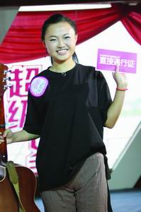 新京報點評:張美娜的成功,最開始源于順子的賞識,因為她會唱多國語言的歌曲。她是2006超女第一張直接通行證獲得者,這對于她是個榮譽,但也是壓力。(記者楊林)