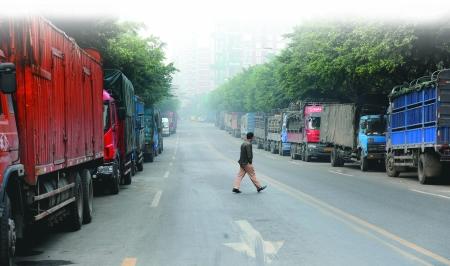 昨日,南岸白鶴路,貨運市場外的道路兩旁停滿了受柴油拖累無法上路行駛的大貨車。本組圖片由首席記者 鐘志兵 攝財經(jīng)調(diào)查