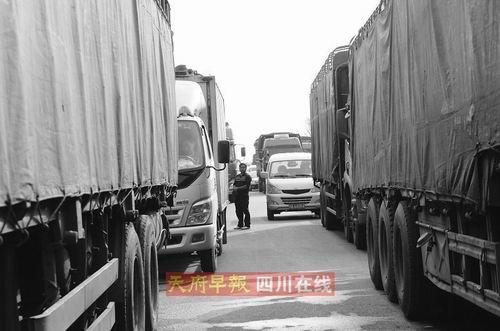 成都某物流基地車場管理員王興順發(fā)現(xiàn),從10月中旬開始,車場內(nèi)停的車越來越多,截至昨天上午11點,車場內(nèi)停了1500多輛車,“從開張以來,就沒有見過這樣的情況!蓖跖d順說,從上個月開始,調(diào)度室里熱鬧不起來了,司機們運完貨回到車場,“都找地方玩去了。”