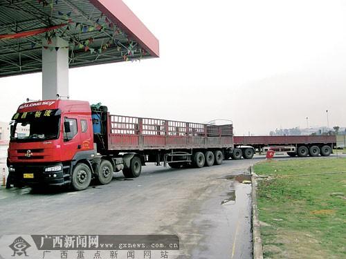 在金橋客運站對面的一家加油站,貨車在等待加油。