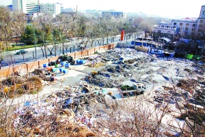 周先生說(shuō),昨天他路過(guò)這里時(shí),看到這片空地有一扇大門(mén)敞開(kāi)著,他近前看到約上千平方米的空地上,到處堆放著渣土、居民垃圾等雜亂物,“很難相信在市中心還有這樣的地方,這與王府井地區(qū)的繁華很不相稱(chēng)!敝芟壬f(shuō)。
