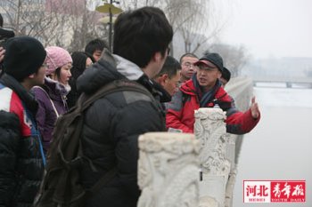 在徒步行走的過(guò)程中,志愿者中“明博相聲沙龍”的演員,還利用途中休息的片刻時(shí)間給大家說(shuō)了相聲,讓大家捧腹大笑。
