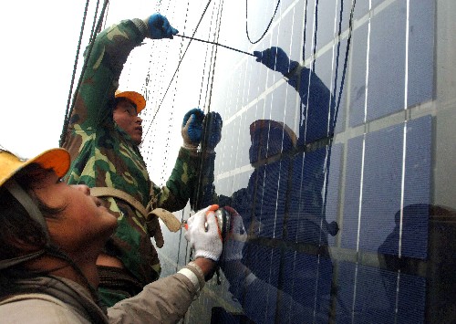 太陽能方面,2009年中國光伏電池年產(chǎn)量約占全球產(chǎn)量的40%,連續(xù)三年居世界第一,為世界太陽能光伏發(fā)電作出了重要貢獻,通過國家能源局公開招標的甘肅敦煌10兆瓦光伏發(fā)電項目也正在建設之中。