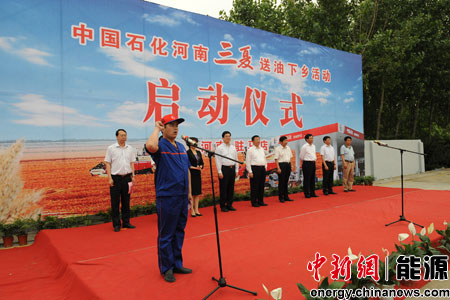 章建華說:“請農(nóng)民朋友放心,中國石化一定能以優(yōu)質(zhì)的油品和優(yōu)良的服務(wù)承擔(dān)起保障三夏供油的光榮使命,以實際行動為國家搞好夏收、夏種、夏管,實現(xiàn)夏糧豐收,為廣大農(nóng)民朋友增加收入做出應(yīng)有的貢獻(xiàn)。”