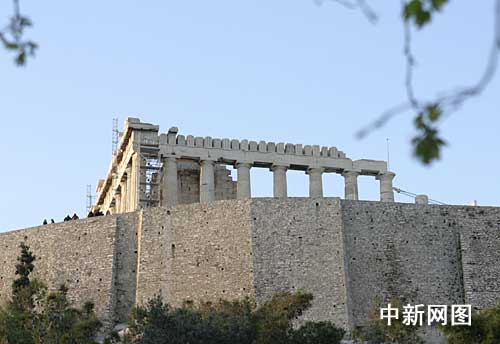 圖:奧運圣火在雅典衛(wèi)城帕特農(nóng)神廟前停留一晚