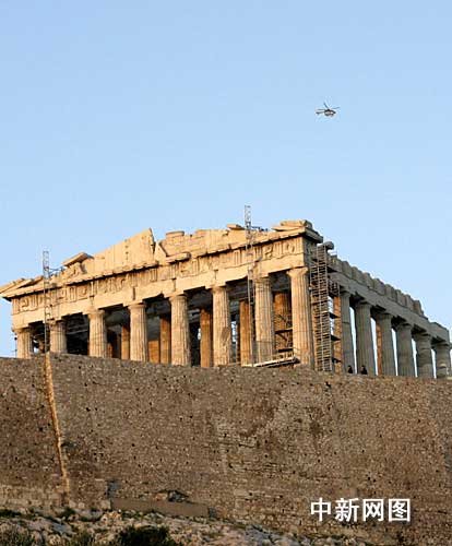 3月29日,北京奧運圣火傳遞到希臘首都雅典,圣火將在衛(wèi)城著名的帕特農神廟前停留一晚。圣火抵達前,直升飛機一直在衛(wèi)城上空盤旋。 中新社記者 王歡