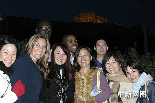 3月29日,北京奧運(yùn)圣火傳遞到希臘首都雅典,圣火將在衛(wèi)城著名的帕特農(nóng)神廟前停留一晚。旅美華人特意從加州趕來觀看北京奧運(yùn)圣火傳遞。 中新社記者 王歡