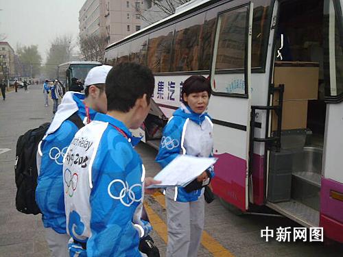 圖:奧運(yùn)火炬?zhèn)鬟f團(tuán)隊(duì)成員葉喬波整裝待發(fā)