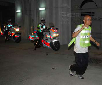 特區(qū)政府為確保本月30日抵港的奧運(yùn)圣火傳遞順利,連月來(lái)已不斷作出評(píng)估及部署,警方、康文署等多個(gè)部門(mén)7日凌晨更首次為整條“火炬跑”路線及車(chē)隊(duì)進(jìn)行測(cè)試演習(xí)。