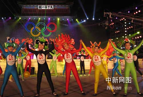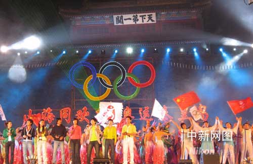 中新網(wǎng)4月29日電 “山海同歡慶·奧運(yùn)秦皇島”迎奧運(yùn)倒計(jì)時(shí)一百天大型慶;顒(dòng)二十九日晚在“天下第一關(guān)”山海關(guān)廣場舉行。今晚的整臺(tái)晚會(huì)節(jié)目精彩紛呈,觀眾揮舞旗幟,陣陣歡呼喝彩不斷。號(hào)稱“天下第一關(guān)”的山海關(guān)變成歌和舞的海洋。秦皇島各界迎接奧運(yùn)盛會(huì)的喜悅與豪情盡展無余。