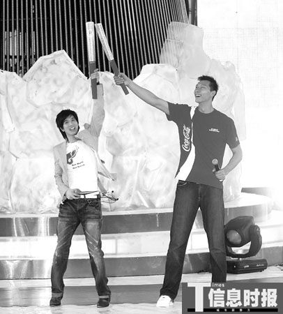 昨天晚上的迎圣火晚會(huì)上,易建聯(lián)一身青春活力的打扮登場(chǎng),在高舉著火炬繞臺(tái)一周后,他與圣火傳遞第一站雅典火炬手王力宏對(duì)接!爱(dāng)我得知我成為火炬手的時(shí)候,我昨晚興奮得整夜沒睡好,”阿聯(lián)說。