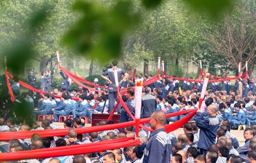 2008年5月6日,北京某監(jiān)獄,由服刑人員自制的祥云火炬在各監(jiān)區(qū)傳遞。