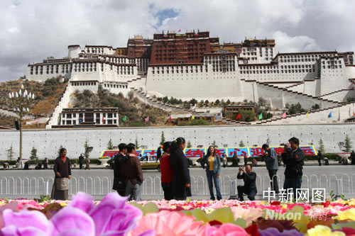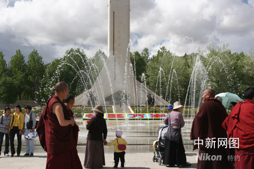 平日只在夜間開放的布達(dá)拉宮廣場(chǎng)音樂噴泉,今日破例在白天開放。廣場(chǎng)上用鮮花搭建的“民族大團(tuán)結(jié)、齊心迎奧運(yùn)”等三組奧運(yùn)主題景觀,把不是節(jié)日勝似節(jié)日的廣場(chǎng)裝點(diǎn)得花團(tuán)錦蔟。廣場(chǎng)上西藏和平解放紀(jì)念碑前,幾位紅衣喇嘛正在接受媒體采訪。日前他們?cè)鴮iT舉辦過“祈愿世界和平、祝福北京奧運(yùn)”主題法會(huì)。年紀(jì)稍長(zhǎng)的一位喇嘛說。“北京奧運(yùn)會(huì)圣火今天成功在珠峰點(diǎn)燃,激發(fā)了中華民族的自豪感。聽說珠峰傳遞結(jié)束后,圣火火種將在拉薩與西藏境內(nèi)傳遞的主火種會(huì)合。這又是一次民族團(tuán)結(jié)的象征,必將彰顯示中華民族傳統(tǒng)的‘和合’理念!