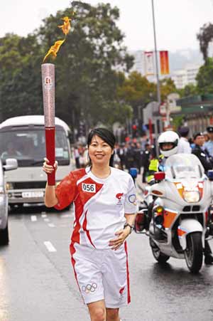 已懷孕7個半月的李穎詩,曾連續(xù)10年成為香港游泳項(xiàng)目的紀(jì)錄保持者,1994年更在廣島亞運(yùn)中勇奪銀牌。運(yùn)動員生涯過去了,她繼續(xù)為香港體育發(fā)展努力,現(xiàn)擔(dān)任運(yùn)動推廣工作;她笑指去年報(bào)名參加火炬手甄選時(shí)還未懷孕,當(dāng)獲通知擔(dān)任第56棒火炬手時(shí),她既感興奮,也擔(dān)心身體未能應(yīng)付,幸好獲醫(yī)生及家人的支持,終鼓起勇氣與女兒共度傳送圣火的歷史時(shí)刻,“傳送時(shí)女兒也在腹中團(tuán)團(tuán)轉(zhuǎn),手仔腳仔也在動,她陪著我一同完成了圣火傳送的任務(wù)”。