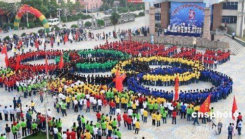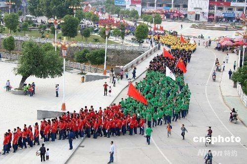 5月16日,地處偏僻山區(qū)的江西德興銅礦2008名礦山職工參加“全民健身與奧運(yùn)同行”活動(dòng),以健步行、編五環(huán)等形式,傳遞奧運(yùn)精神,支持北京奧運(yùn)會(huì),表達(dá)礦工喜迎奧運(yùn)的心情。 中新社發(fā) 胡敦煌 攝