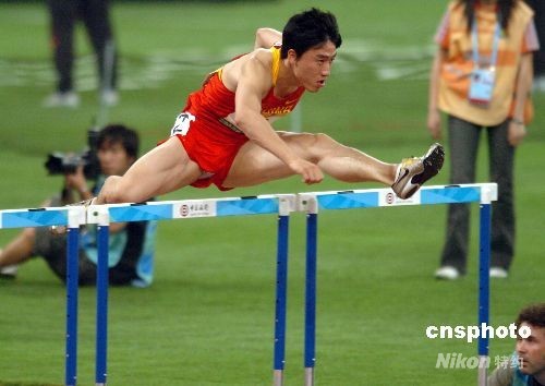 2008年5月22日,好運(yùn)北京2008中國(guó)田徑公開賽將在國(guó)家體育場(chǎng)“鳥巢”如期舉行。在晚上男子110米欄的第一輪比賽中劉翔亮相,并以13秒63的成績(jī)進(jìn)入下輪比賽。 中新社發(fā) 吳峻 攝