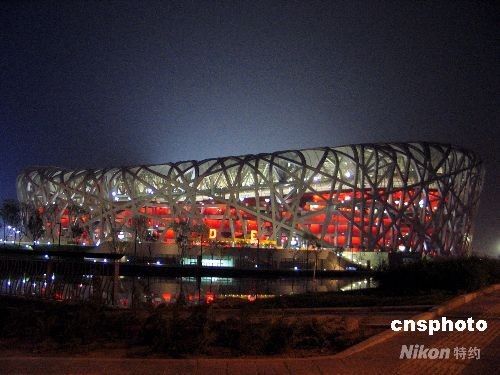 2008年5月22日,“好運(yùn)北京2008搜狐中國田徑公開賽”在國家體育場開賽,首日比賽持續(xù)到當(dāng)晚23:30結(jié)束。夜幕下的“鳥巢”和“水立方”在璀璨的燈光中更加壯麗紛呈,美輪美奐。 中新社發(fā) 張侃 攝