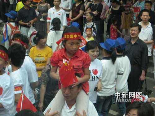五月三十一日,奧運(yùn)火炬接力在武漢進(jìn)行,數(shù)十萬熱情的武漢市民從八方趕來,為奧運(yùn)喝彩,為中國(guó)加油。(作者 艾啟平)