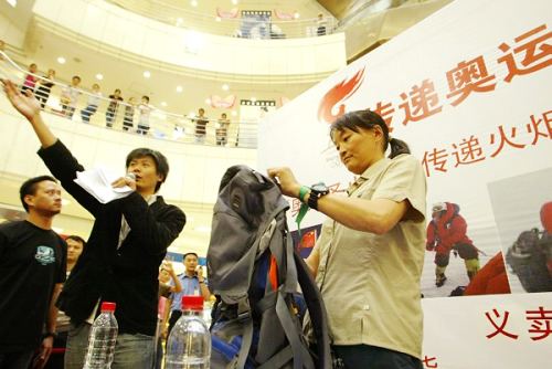 中新網(wǎng)6月9日電 6月7日下午,吉吉、李富慶、次洛等珠峰火炬手和中國登山隊(duì)形象大使譚維維現(xiàn)身成都,在王府井百貨商場的“傳遞奧運(yùn)精神,共建愛心家園”的愛心義賣會上,他們紛紛拿出了圣火登頂珠峰時的心愛之物義賣,并現(xiàn)場愛心簽售了圣火登頂主題歌《無法阻擋》的限量單曲碟,為成都傳媒集團(tuán)和成都餐飲同業(yè)公會發(fā)起組織的災(zāi)區(qū)“愛心食堂”添柴加火。