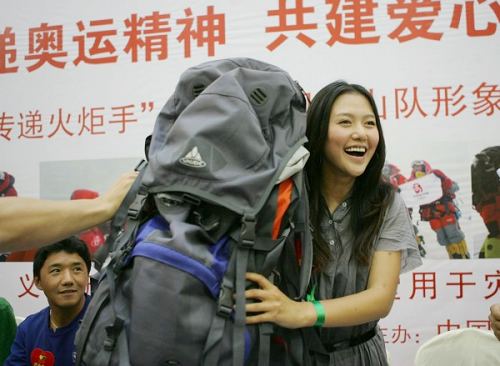 吉吉展示登頂背包