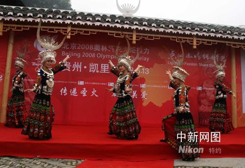 火炬從郎德上寨出發(fā)后,將沿著美麗的巴拉河傳遞,先后經(jīng)過依山傍水的季刀苗寨、南花苗寨、三棵樹苗寨,充分展示黔東南的民族風(fēng)情。這是奧運(yùn)火炬自中國(guó)境內(nèi)傳遞以來最具民族特色的一段路線。