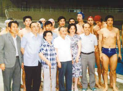 1990年7月3日,鄧小平視察北京亞運(yùn)村后,在游泳館看望中國(guó)水球隊(duì)運(yùn)動(dòng)員。