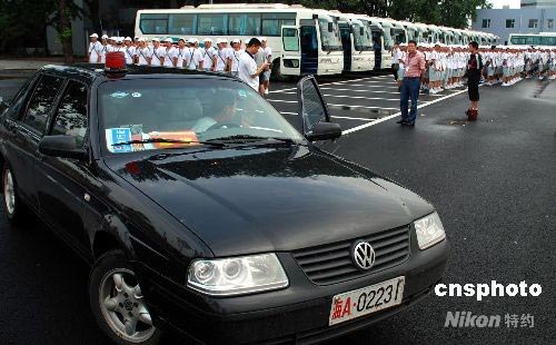 7月15日早上,除一輛懸掛海軍牌照的開路轎車外,其它進(jìn)入鳥巢的車輛均摘掉了車牌。北京奧組委采取嚴(yán)格的保密措施防止開幕式節(jié)目?jī)?nèi)容泄露。中新社發(fā) 楊慧峰 攝