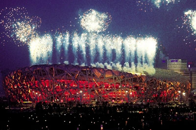 據(jù)此間京華時報報道說,16日晚,“鳥巢”夜景照明系統(tǒng)首次全亮燈“彩排”。 燈光表演共分5個部分,分別為:呼吸、心跳、旋轉(zhuǎn)、奔跑、升起。整個過程為15分鐘。 首次全身亮燈的鳥巢與空中的禮花交相輝映。