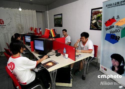 7月17日,青島奧帆賽多國語言志愿者呼叫中心日前正式開始對(duì)外服務(wù),客服人員通過查詢可以回答旅行者關(guān)于吃、住、行、娛、購和奧運(yùn)志愿者有關(guān)問題。 咨詢者撥打16882008,可以得到8種語言的語音導(dǎo)航,根據(jù)咨詢者的選擇電話將分配給說日語、朝鮮語、德語、法語、俄語、西班牙語、漢語以及英語的客服人員。據(jù)了解,多國語言志愿者呼叫中心除了解決路線、青島的導(dǎo)游導(dǎo)購、翻譯問題以外,還可以緊急情況下派翻譯到現(xiàn)場(chǎng)服務(wù)。中新社發(fā) 李東升 攝