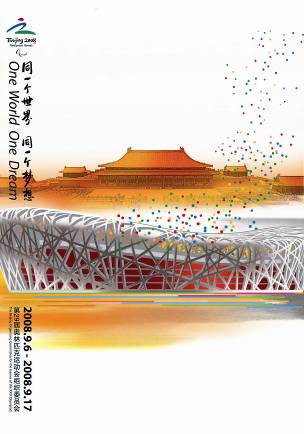 北京奧組委今天(18日)正式對外公布了北京2008年奧運(yùn)會、殘奧會官方海報(bào)和官方圖片。圖為主題海報(bào)《文明北京 和諧奧運(yùn)》。主題海報(bào)用象征的手法,由代表北京奧運(yùn)的體育場館和經(jīng)典的北京建筑組成,中國水墨意蘊(yùn)其間,氣韻生動。體育與文化,奧運(yùn)與中國和諧輝映。該方案三幅合一成為組畫。