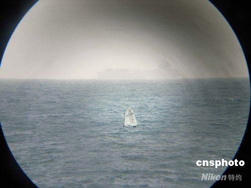 7月中旬,攝影者通過賽場里觀眾使用的望遠(yuǎn)鏡遠(yuǎn)眺青島奧帆賽場運(yùn)動員訓(xùn)練。 中新社發(fā) 廖攀 攝