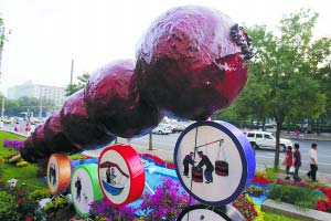 在天安門東側(cè),翠綠的檜柏已堆成山狀;在天安門西側(cè),3個(gè)鐵藝的“彩虹橋”已露出雛形……據(jù)北京城建集團(tuán)花木公司相關(guān)負(fù)責(zé)人介紹,7月底之前,包括天安門、長安街、機(jī)場航站樓、機(jī)場路、奧運(yùn)中心區(qū)在內(nèi)的重點(diǎn)區(qū)域擺花工作將全面完成。