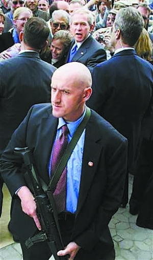 要當(dāng)布什的保鏢必須滿足這些條件:美國公民,21歲以上37歲以下,知名學(xué)院或者大學(xué)的本科學(xué)位,在犯罪調(diào)查或者其他執(zhí)法機構(gòu)3年以上工作經(jīng)驗;視力要求一級棒,體格要求很出色,必須通過特工處的特別考試,必須接受祖上三代審查以及是否吸毒、醫(yī)療檢查和心理測試。全部通過并完成了特工處的嚴(yán)格訓(xùn)練,才可以持證上崗(上圖:布什保鏢在美國值勤)。