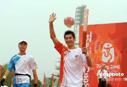圖:奧運火炬泰安傳遞 體操冠軍傳首棒