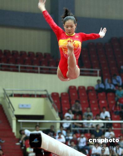 程菲在天津體育中心參加國際體聯(lián)2008體操世界杯中國站的比賽。中新社發(fā) 郭曉帆 攝