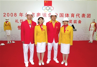 為了設(shè)計中國軍團(tuán)奧運禮儀裝備,由中國奧委會主辦,國家體育總局體育器材裝備中心、“恒源祥”自二OO六年十二月起舉辦了為期一年八個月的“北京二00八年奧運會中國體育代表團(tuán)禮儀裝備設(shè)計大賽”。二十四日正式亮相的這套奧運會全套禮儀裝備,是從海內(nèi)外一千多件參賽作品中選拔出來并制作完成的,將伴隨中國體育健兒出席八月八日北京奧運會開幕式。