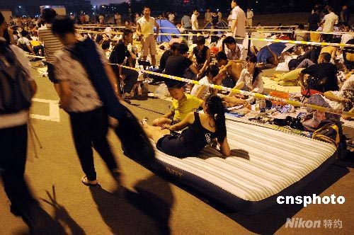 7月25日凌晨,北京兩萬余市民晝夜排隊(duì)期盼買到自己喜愛的奧運(yùn)項(xiàng)目賽事門票,F(xiàn)場(chǎng)有公安、城管、醫(yī)療救護(hù)、志愿者等工作人員24小時(shí)維持秩序,陪護(hù)市民有序購(gòu)票。 中新社發(fā) 陳文 攝