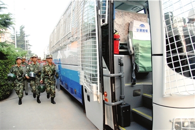 據(jù)了解,為應(yīng)對奧運期間可能發(fā)生的恐怖襲擊,突擊隊新配有多輛防暴客車,這種客車車身上配有白色金屬防護(hù)網(wǎng),突擊隊還配有車身帶有尖刺的防彈運兵車。