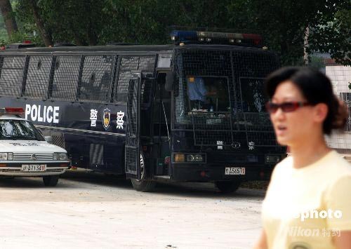 停在賣票點附近的防爆警車。中新社發(fā) 王東明 攝