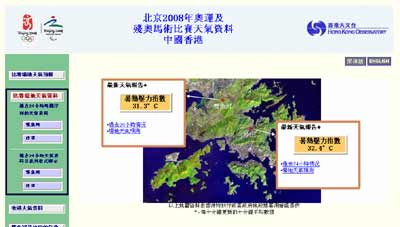 公眾人士可以從天文臺的馬術(shù)比賽天氣網(wǎng)站獲得最新比賽場地的詳細(xì)天氣預(yù)測、天氣警告、實(shí)時(shí)天氣狀況及環(huán)境保護(hù)署提供的賽場區(qū)域空氣污染指數(shù)。