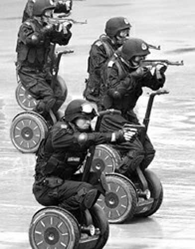 我的官方中文名稱叫“思維智能移動代步設備”。我很綠色,采用新能源鋰電池作為動力,無任何尾氣排放。比自行車占地面積小,帶著我,可以自如地進出電梯。而踏上我,工作人員就有了離地20厘米的額外高度,明顯高出人群一頭。既有利于觀察周圍情況,也有利于群眾報警。
