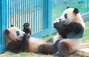 前段時(shí)間《功夫熊貓》在國(guó)內(nèi)院線的熱映,讓從賣面小二成長(zhǎng)為神龍大俠的“主人貓”阿寶,成為了無數(shù)小朋友和肥胖人士心中頂禮膜拜的偶像。隨著北京奧運(yùn)會(huì)的漸漸臨近,四川臥龍自然保護(hù)區(qū)專門為北京奧運(yùn)會(huì)精心挑選的8只兩歲大奧運(yùn)熊貓,在從汶川大地震“劫后余生”后被運(yùn)到了北京,自6月6日公開亮相后,已吸引了上百萬中外游客。如今,它們中的大部分已被認(rèn)養(yǎng)。