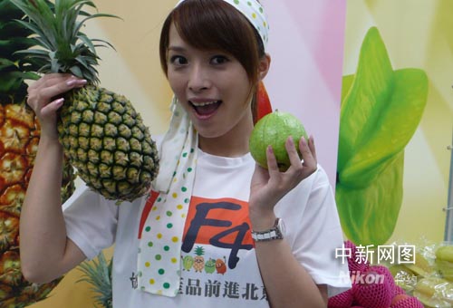 在這個名為“F4臺灣農(nóng)產(chǎn)品前進北京”記者會上,陳武雄為四名奧運水果運動員裝扮的女生帶上特制金牌,并一起持模擬火炬“點燃”圣火,高呼“臺灣水果,前進北京”等口號。